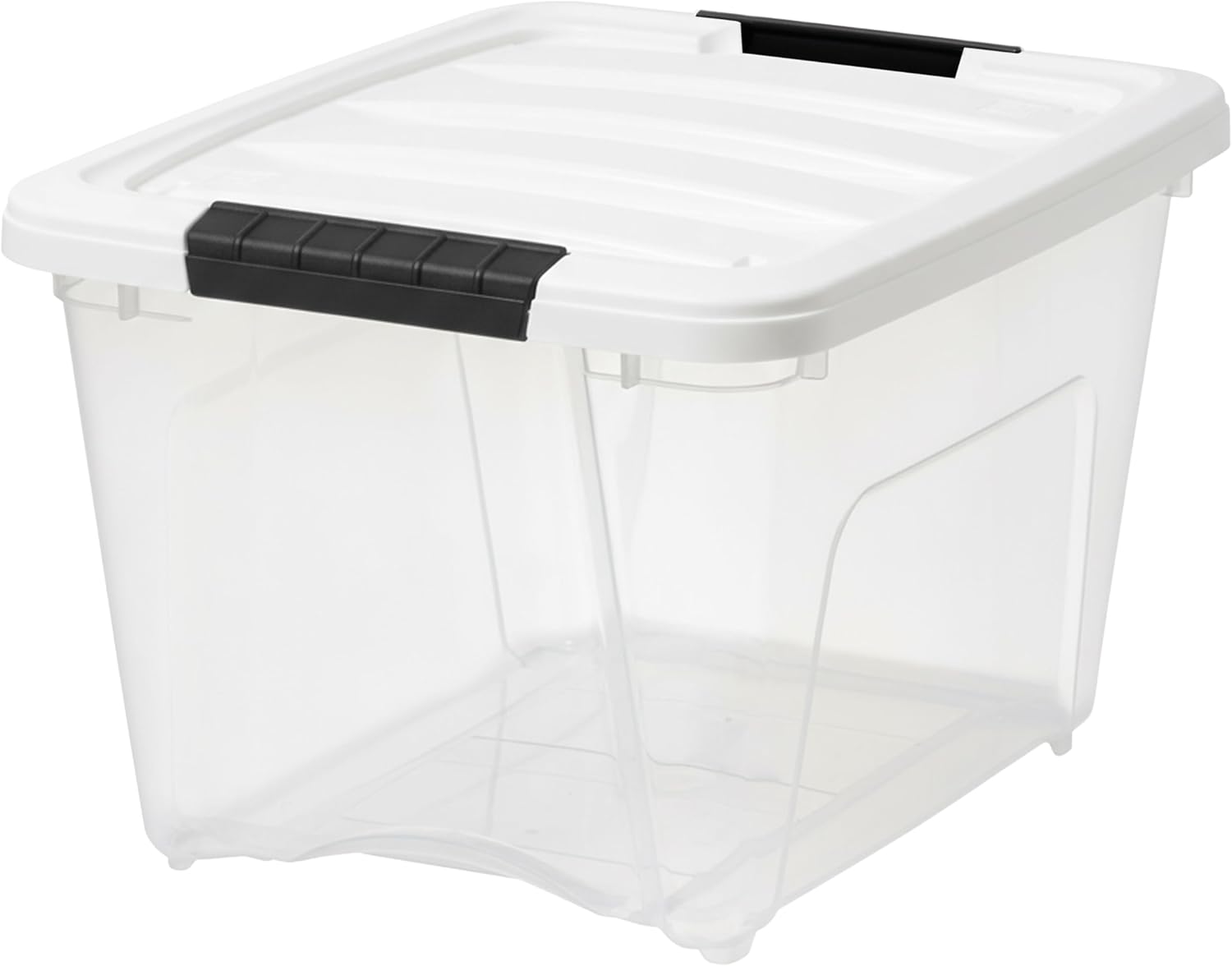 PULL HANDLE & BUCKLES: A handy handle on the bottom of the bin, makes it easy to pull it out even from high shelves, while secure buckles keep lid in place.
