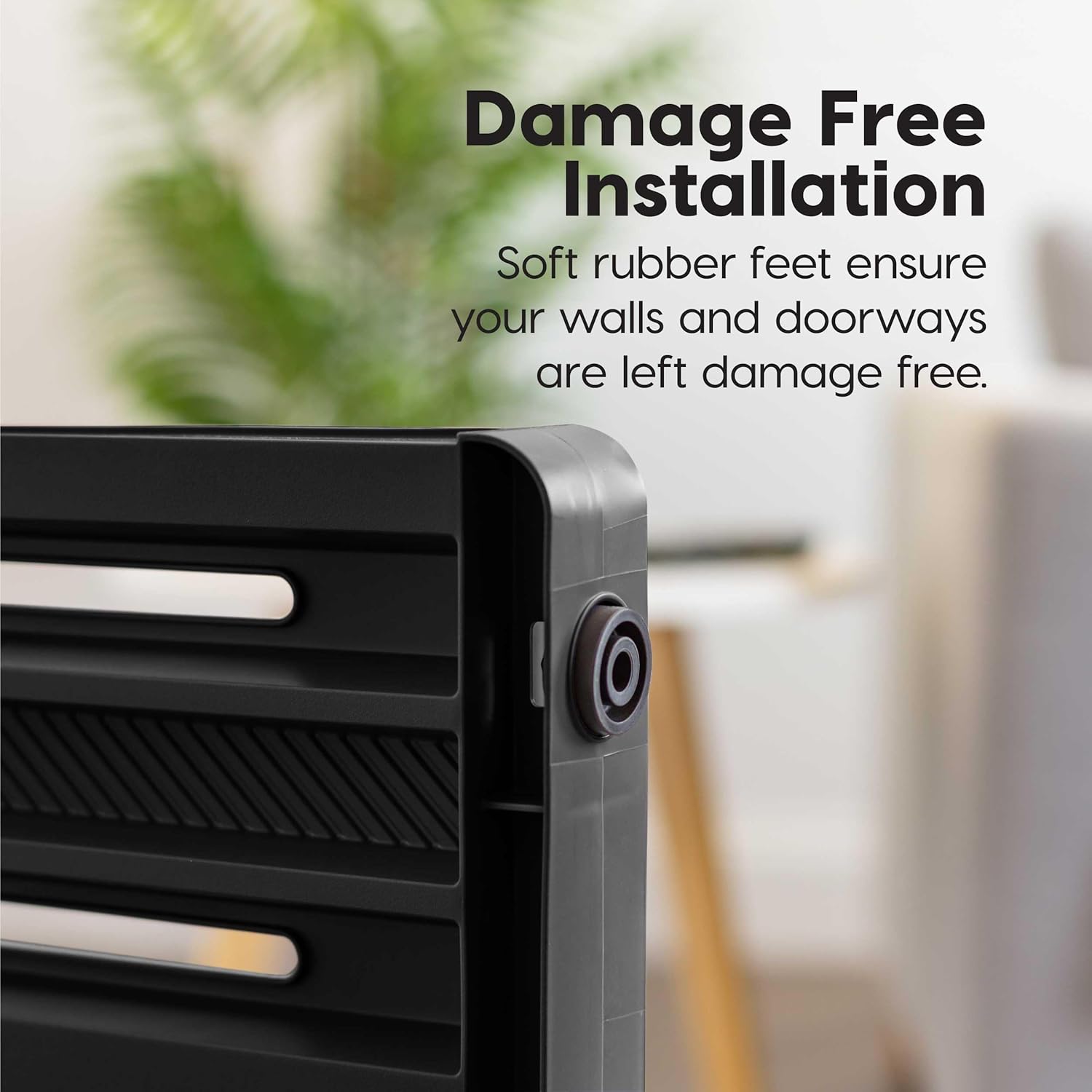 WALL PROTECTION: Rubber feet on their side of the pressure mount pet fence keep your walls and doorways protected and prevent damage to your home.