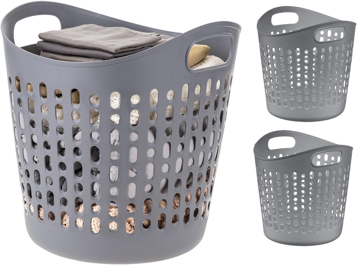 Plastic Laundry Basket Hamper, 3-Pack, 40L / 10 Gal