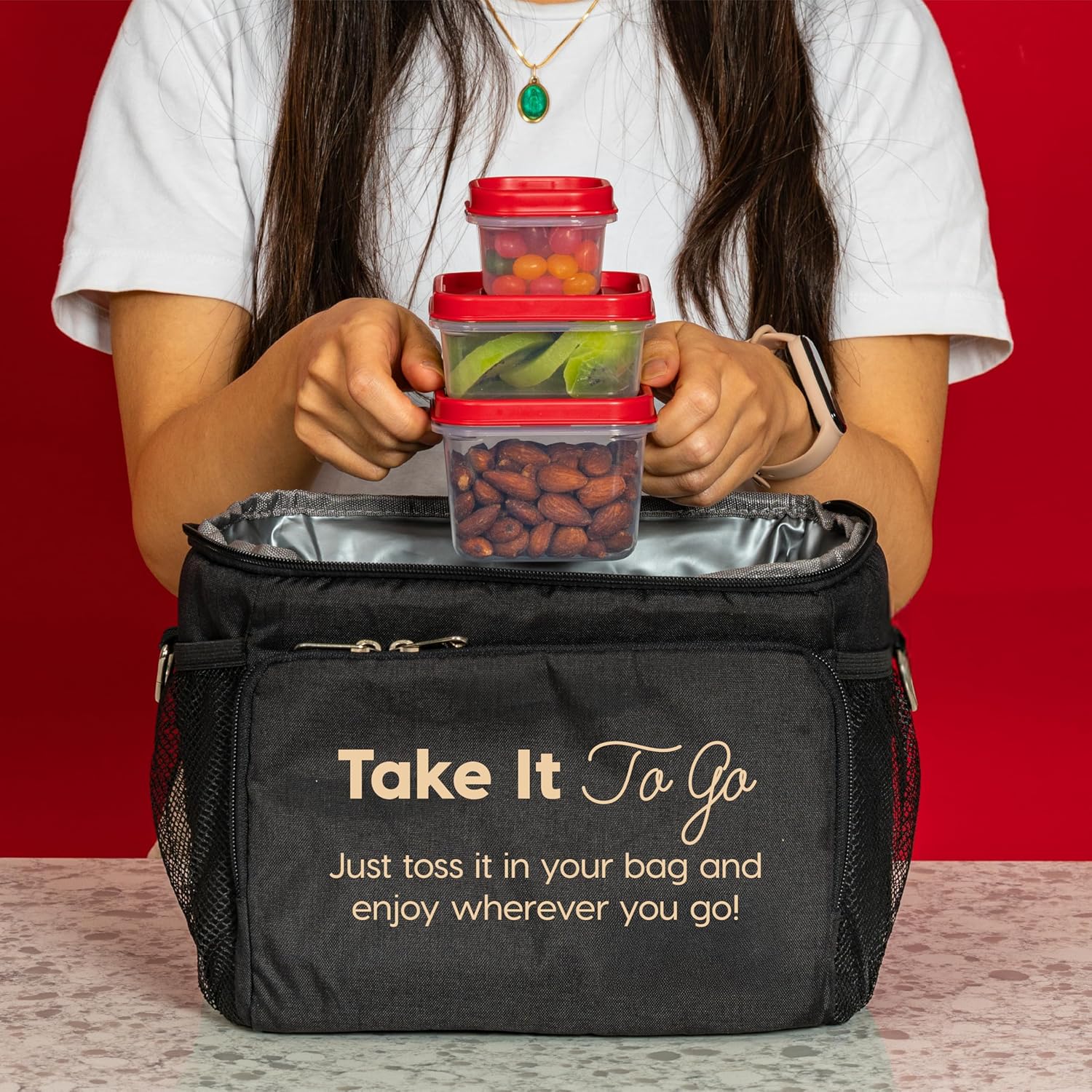 IDEAL FOR SNACKS, SIDES & DIPS: Use the 12.16 oz containers for sides or fruit, the 8.32 oz containers for trail mix, dried fruits, cheese cubes, or granola, and the 3.2 oz sauce containers for dressings, dips, and condiments like ketchup or mayo.
