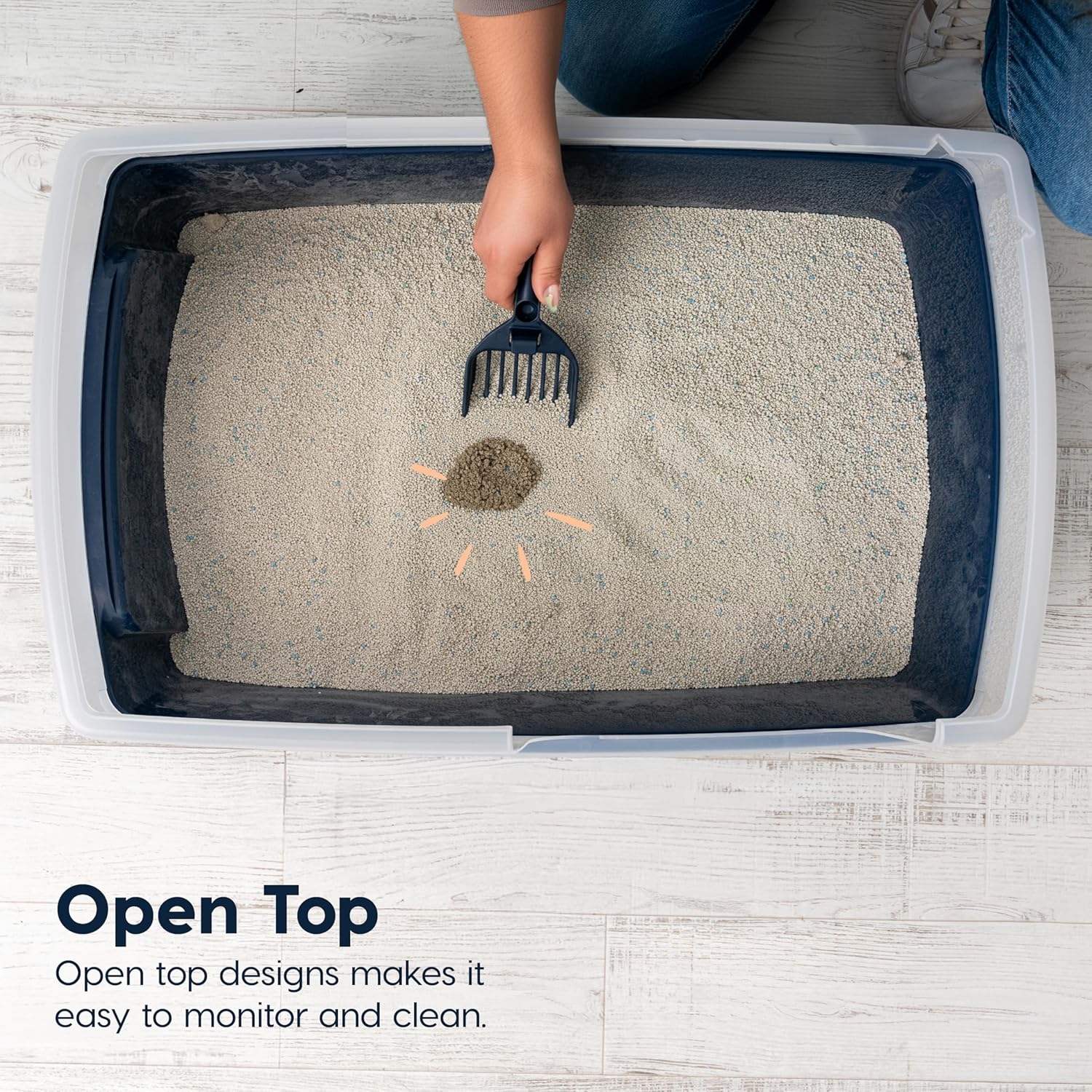 OPEN TOP: The open-top design encourages airflow and makes it easy to monitor your cat’s litter habits. It’s ideal for cats who dislike covered boxes and lets you know exactly when it’s time to scoop, helping maintain a fresher, cleaner space.