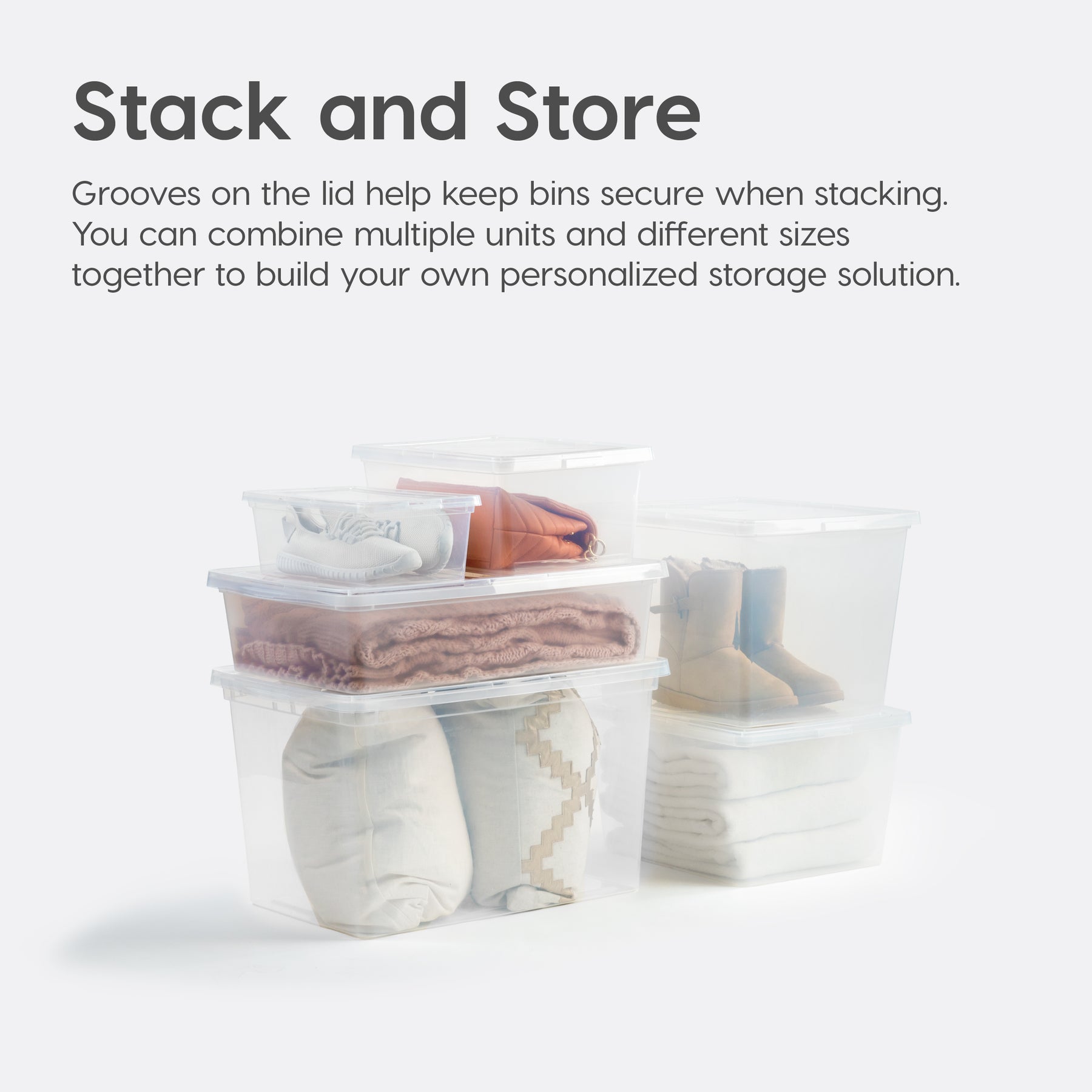 - STACK THEM UP – Plastic Storage Container Bin Tote has groves on the lid and body to create a secure stacking solution. IRIS USA lid-body construction ensures stability to stack securely for easy moving, and save space in your house, apartment, and condo.